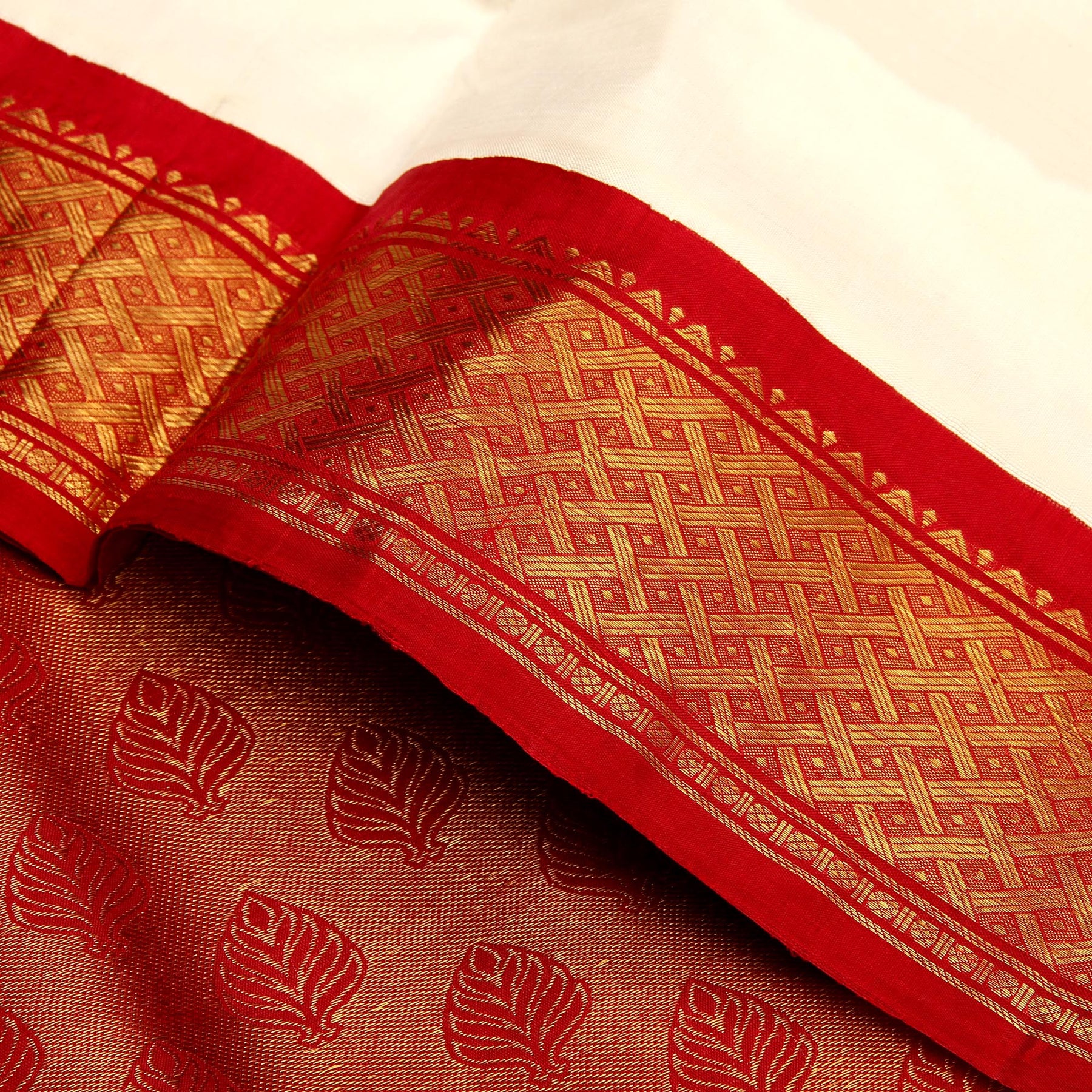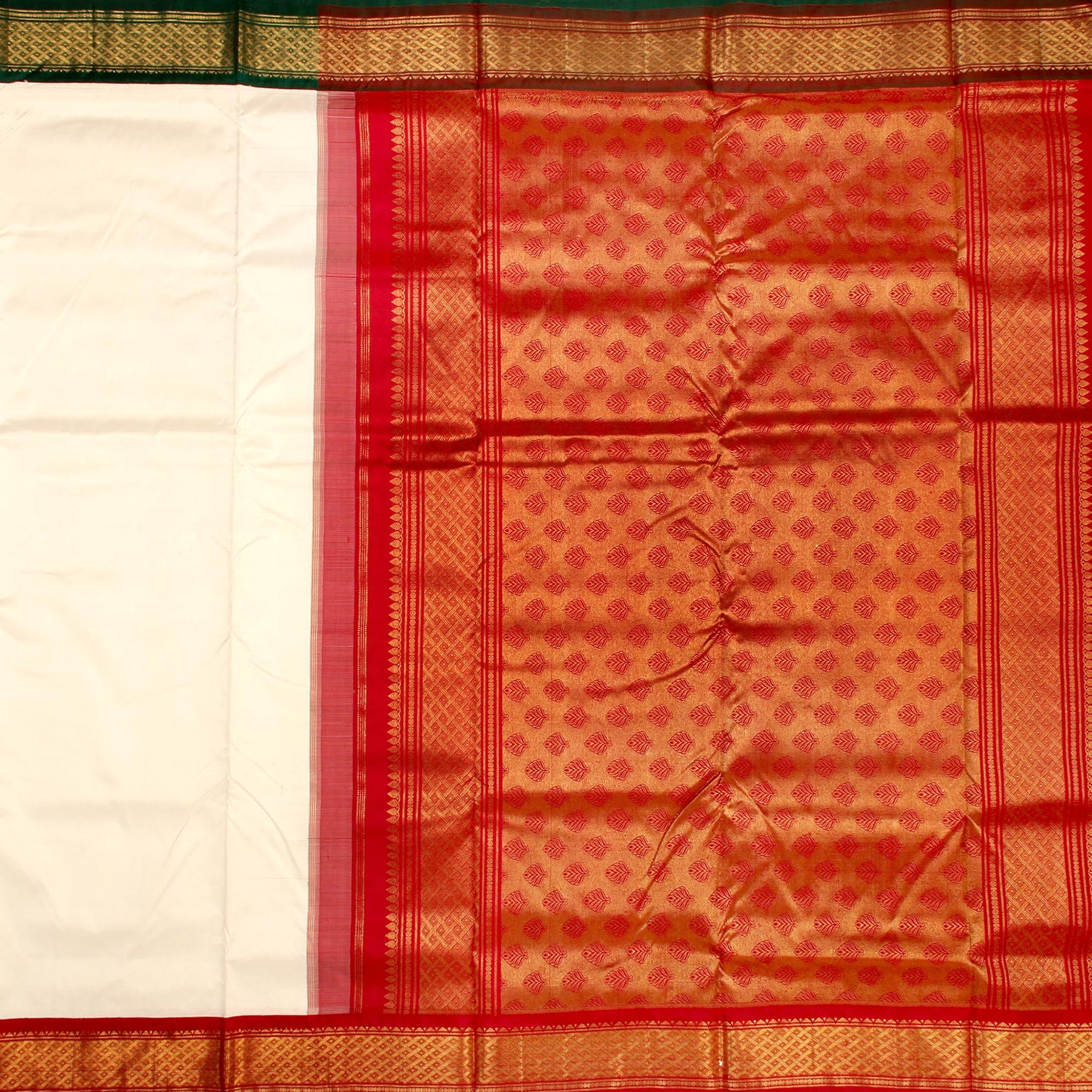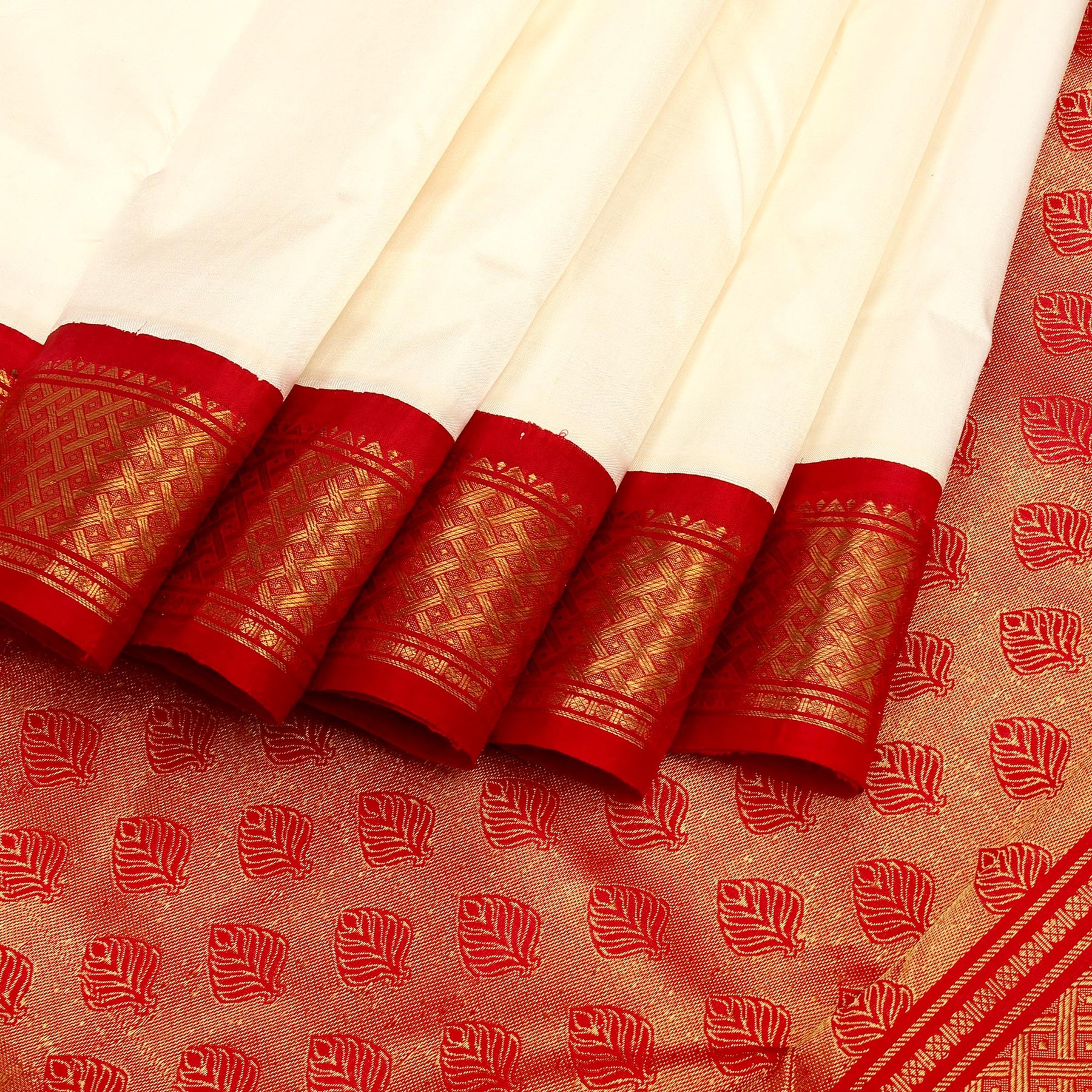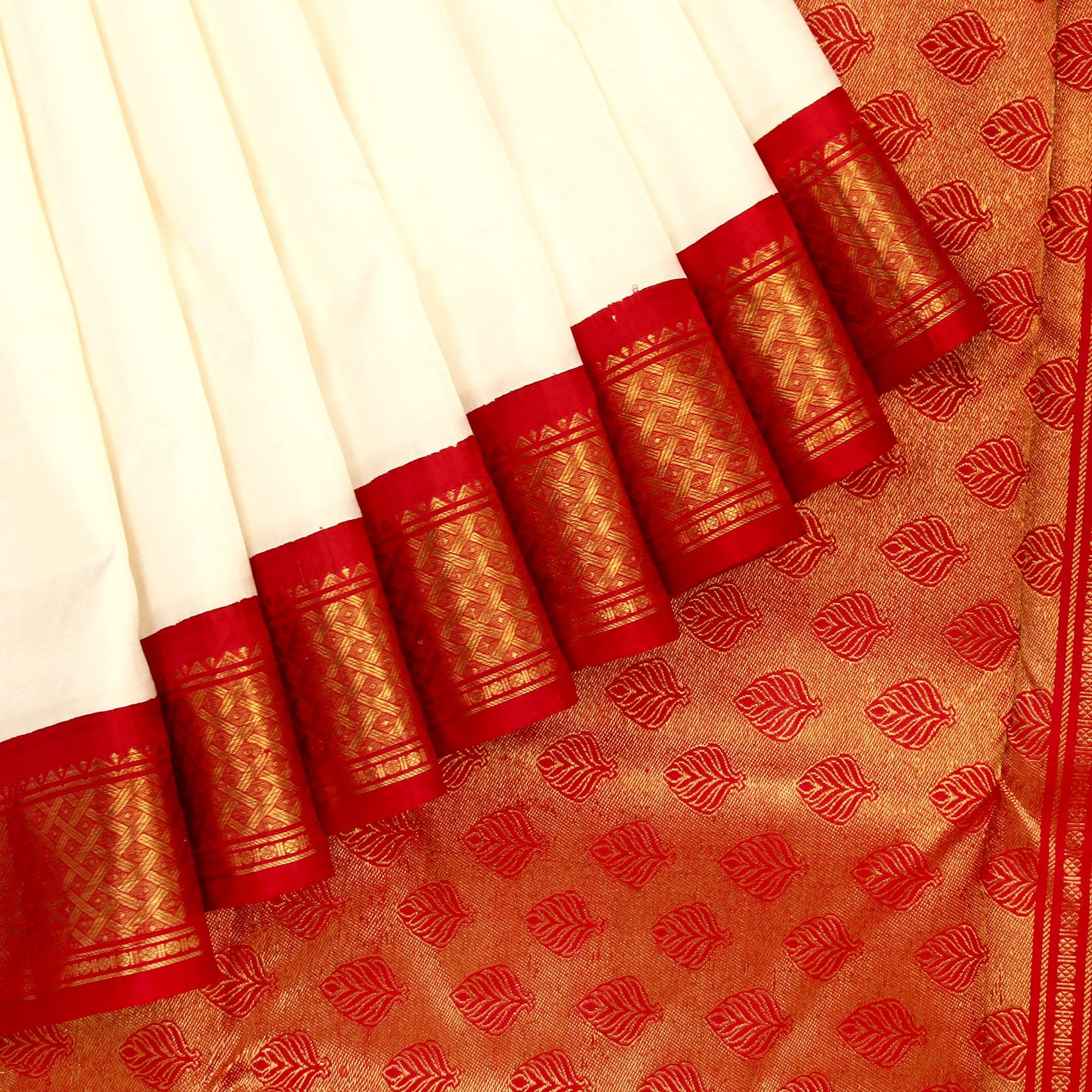 Kuberan White Red 9 Yards Silk Saree