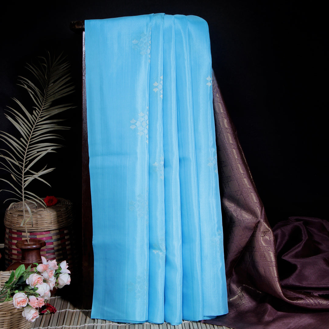 Kuberan Peacock Blue Pure Soft Silk Saree