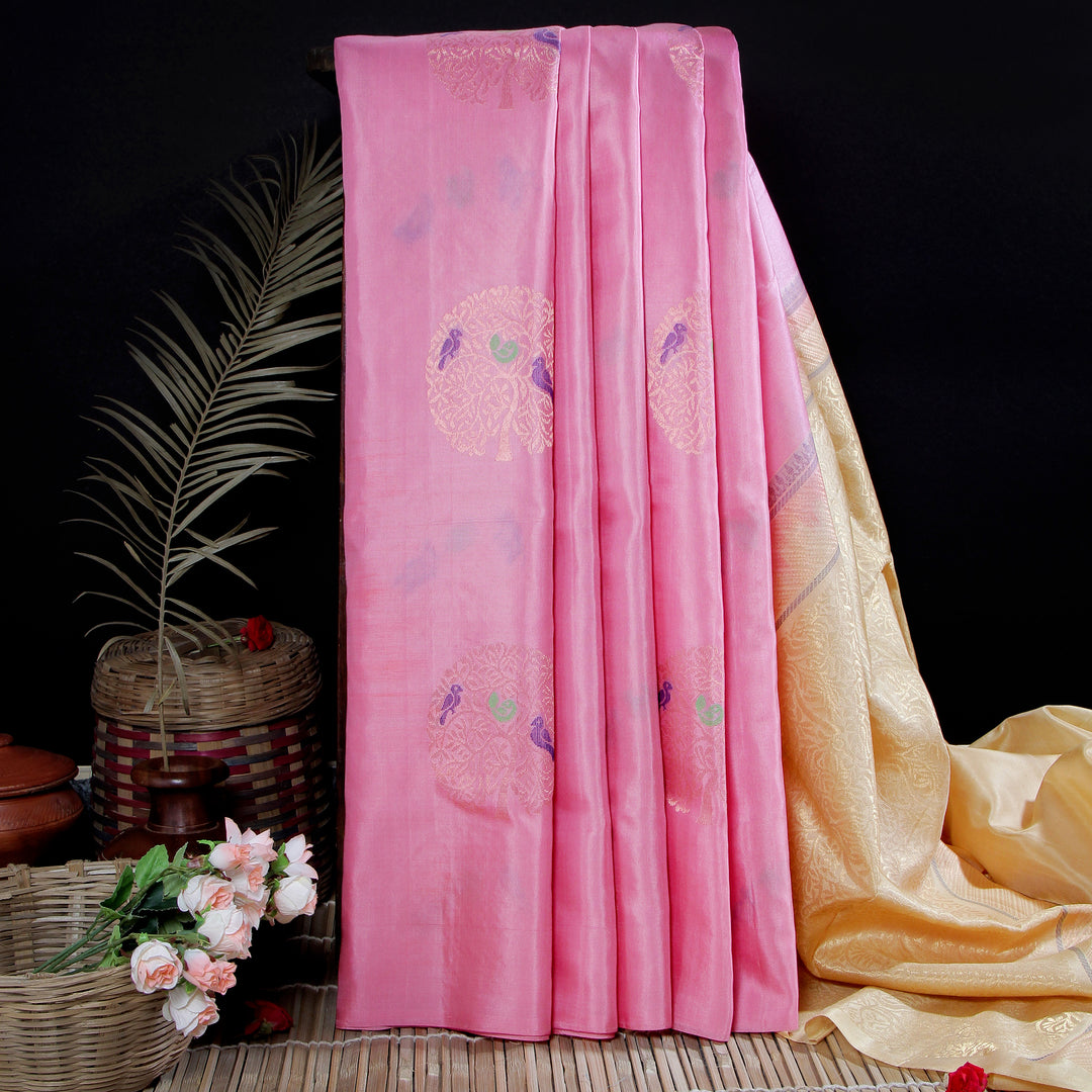 Kuberan Black With Pink Border Linen Kanchipuram Silk Saree