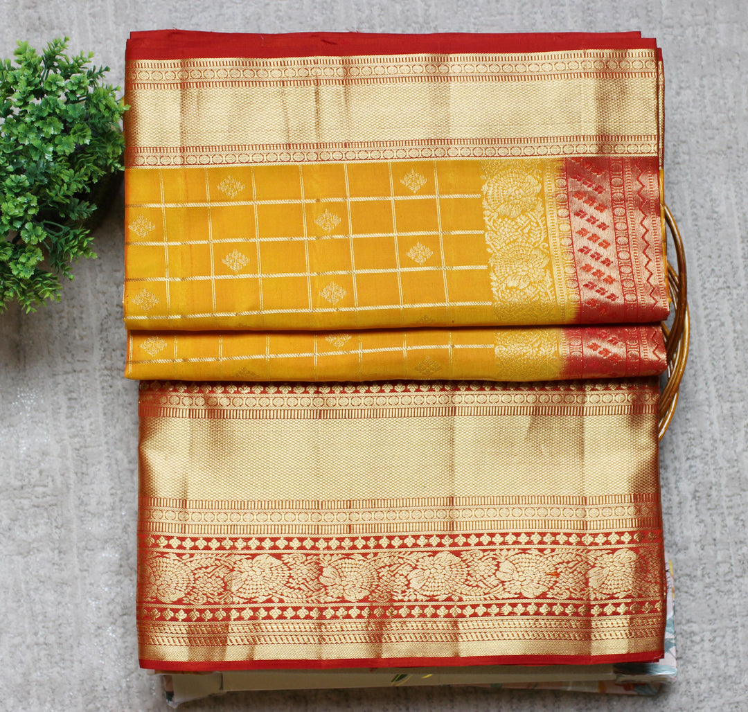 Kuberan Yellow Purple Pochampally Pure Soft Silk Saree