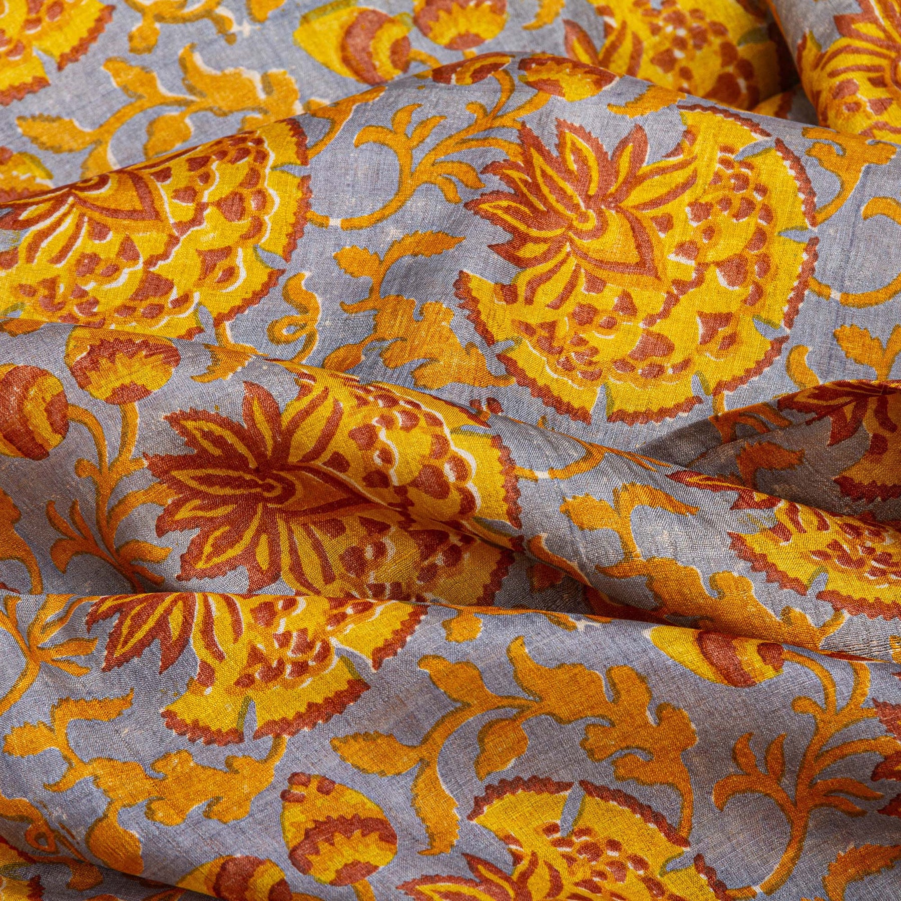 Kuberan Brown Grey Tussar Pure Silk Saree