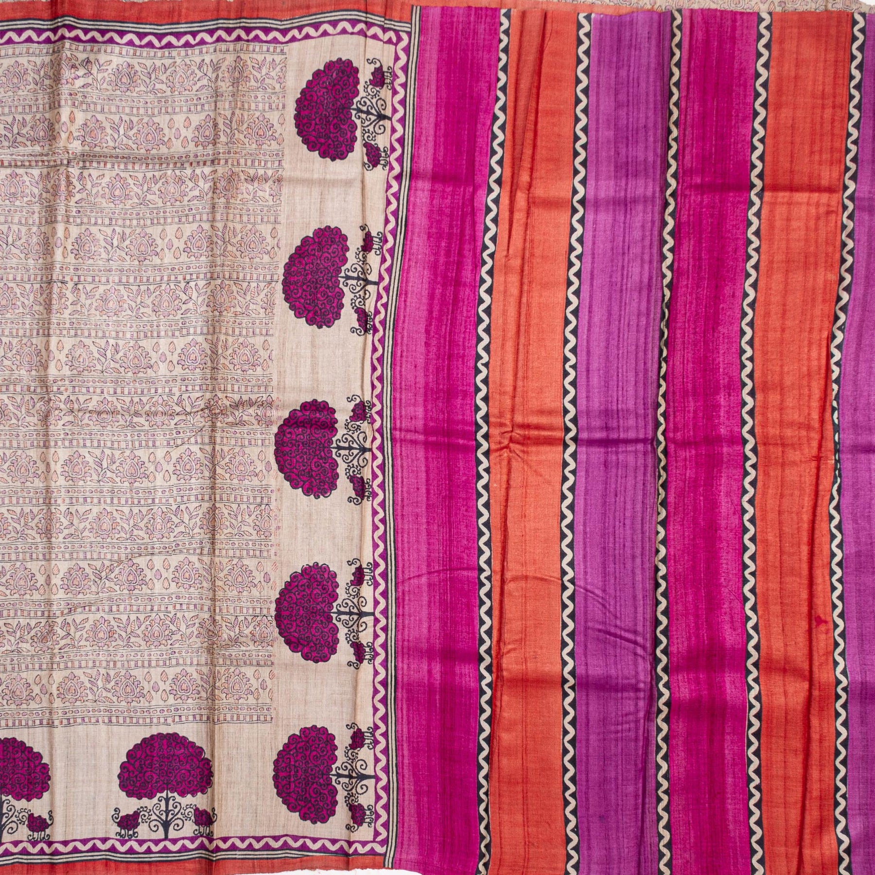 Kuberan Off White Tussar Pure Silk Saree