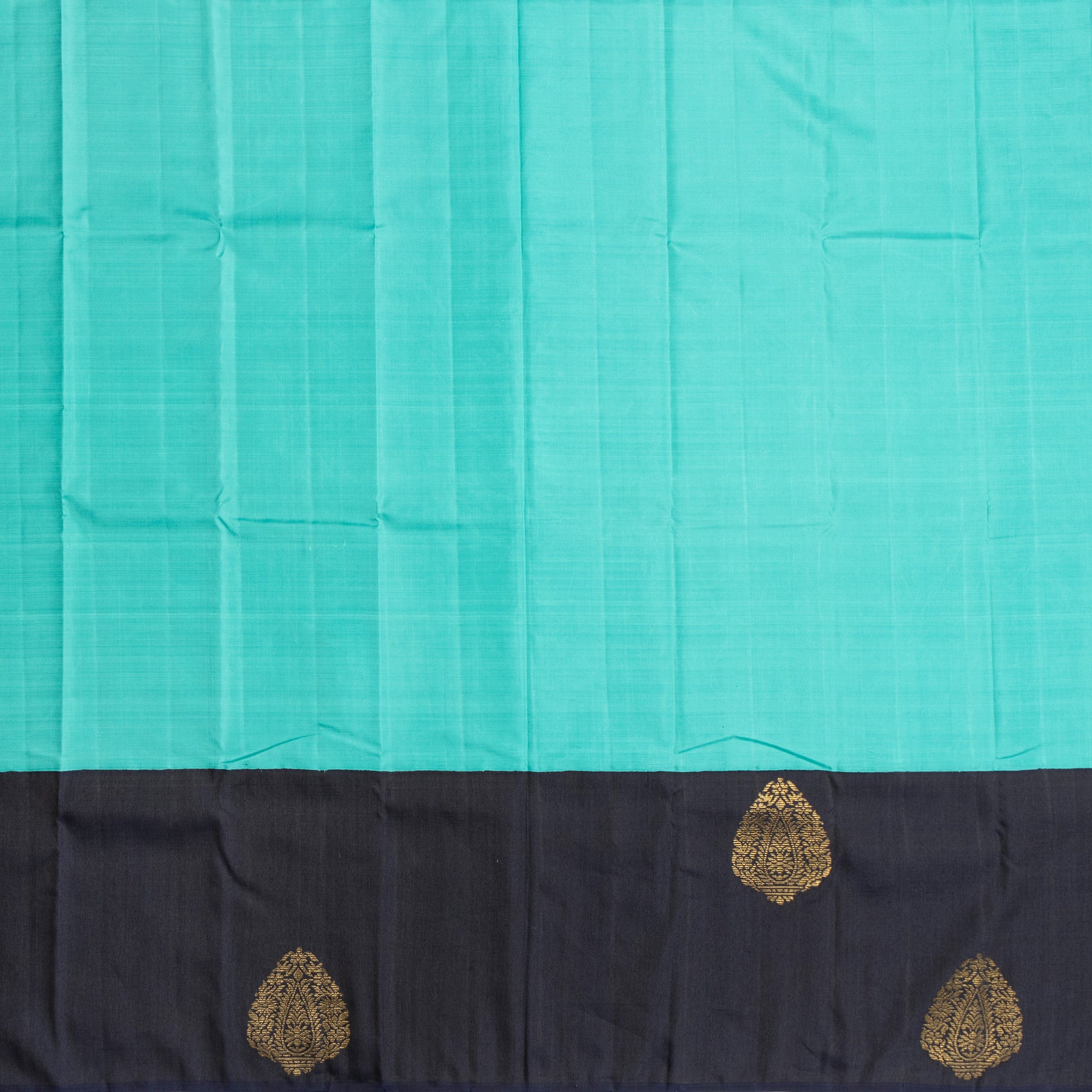 Kuberan Blue With Black Border Linen Kanchipuram Silk Saree