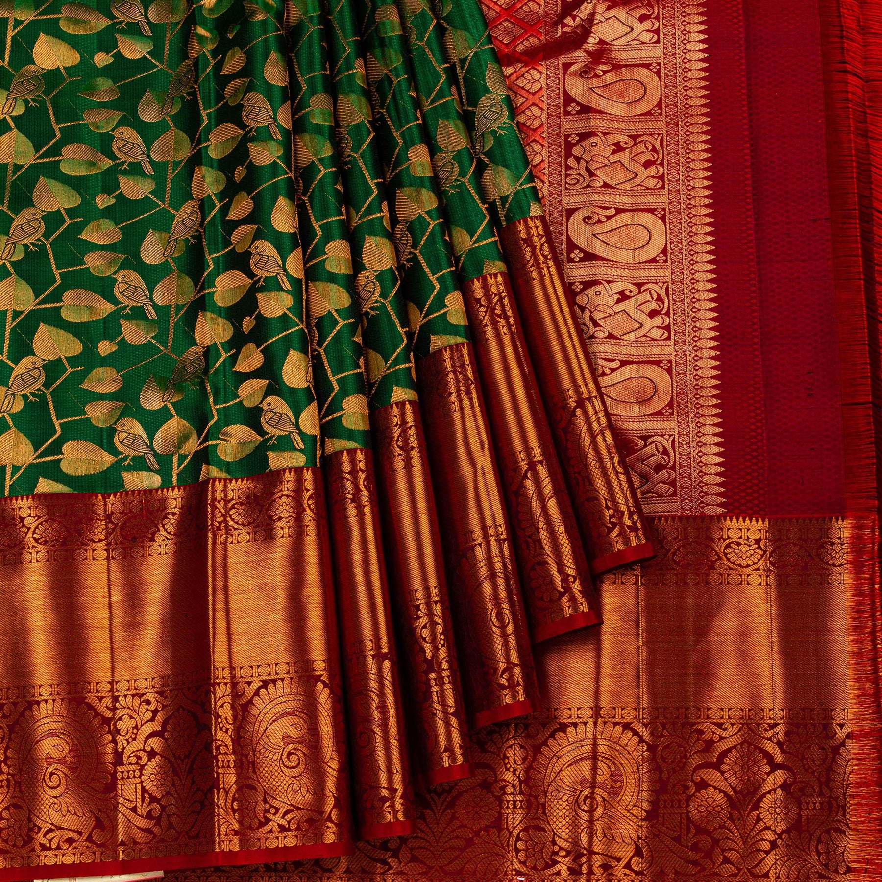 Kuberan Bottle Green Maroon Kanchipuram Silk Saree