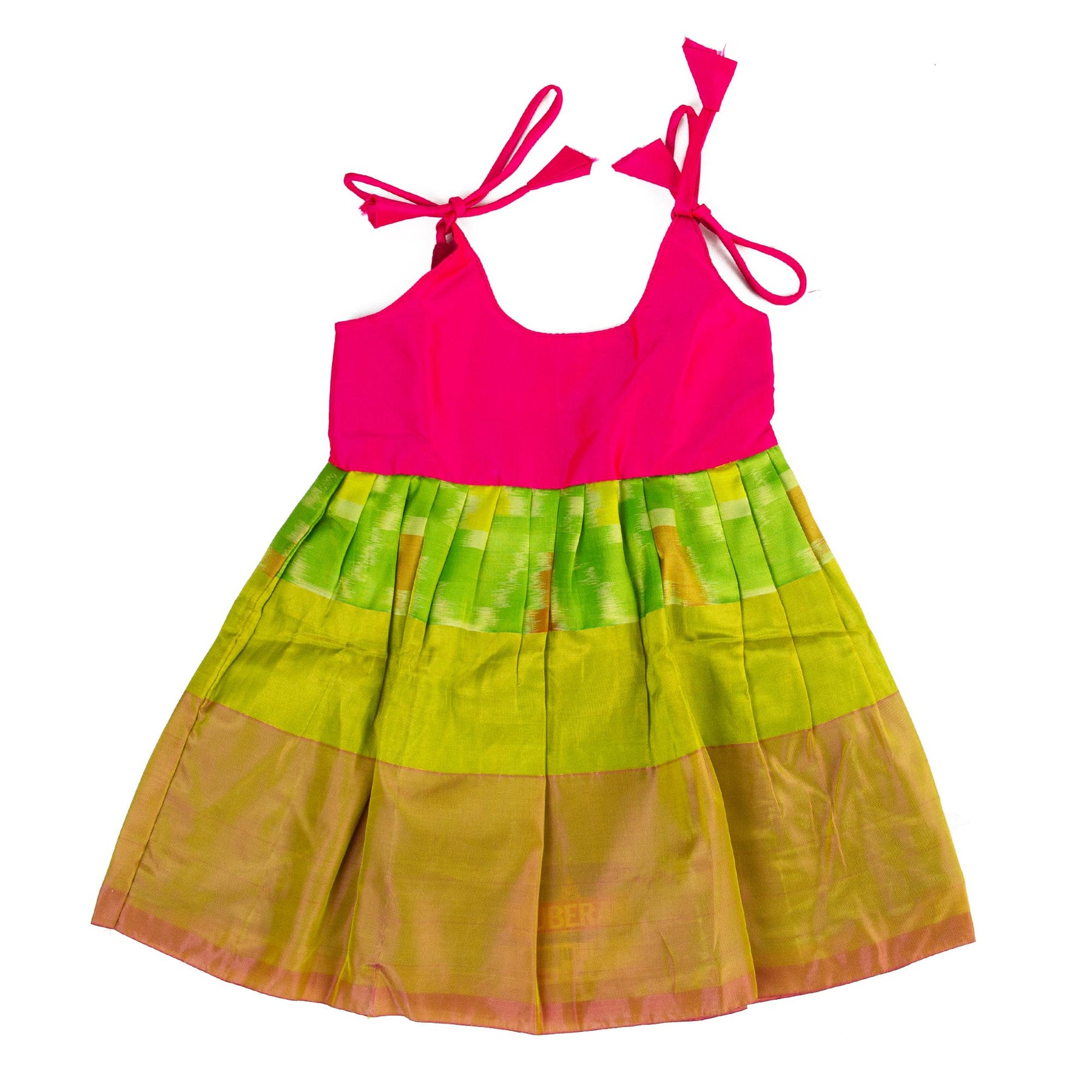 Kuberan Green Pink Pure Silk Readymade Pavada