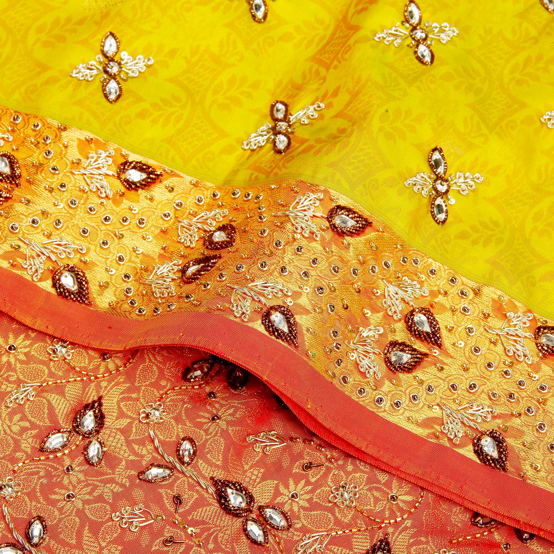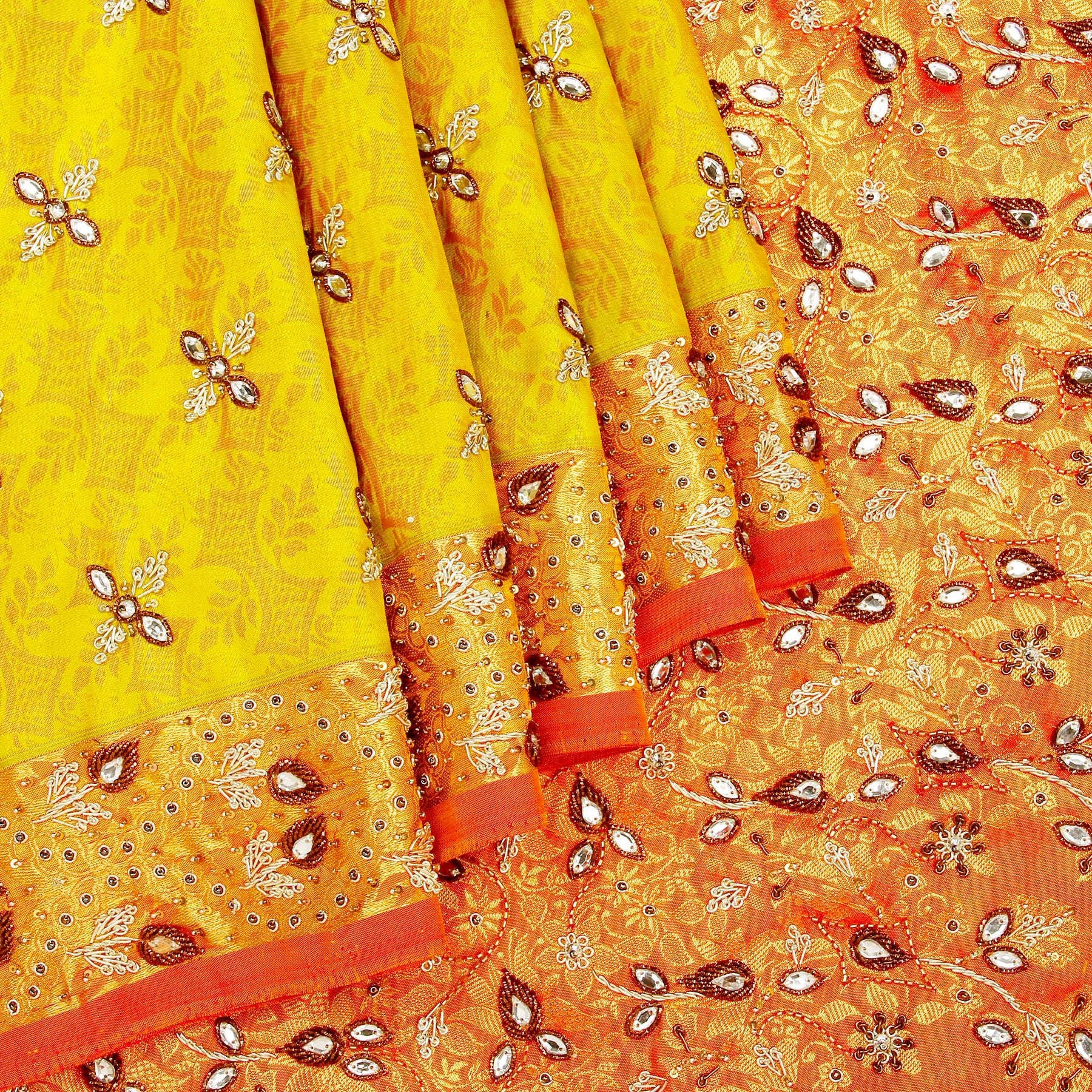 Hey grab the latest collections from the house of KUBERAN. This saree is a hand embroidered saree which is a must have for all the special occasions. The contrast in this saree is the bright colour combination with beautiful butties and gives a royal look to the wearer, don't miss this saree to add on to your wardrobe. This saree is a set with an unstitched blouse.