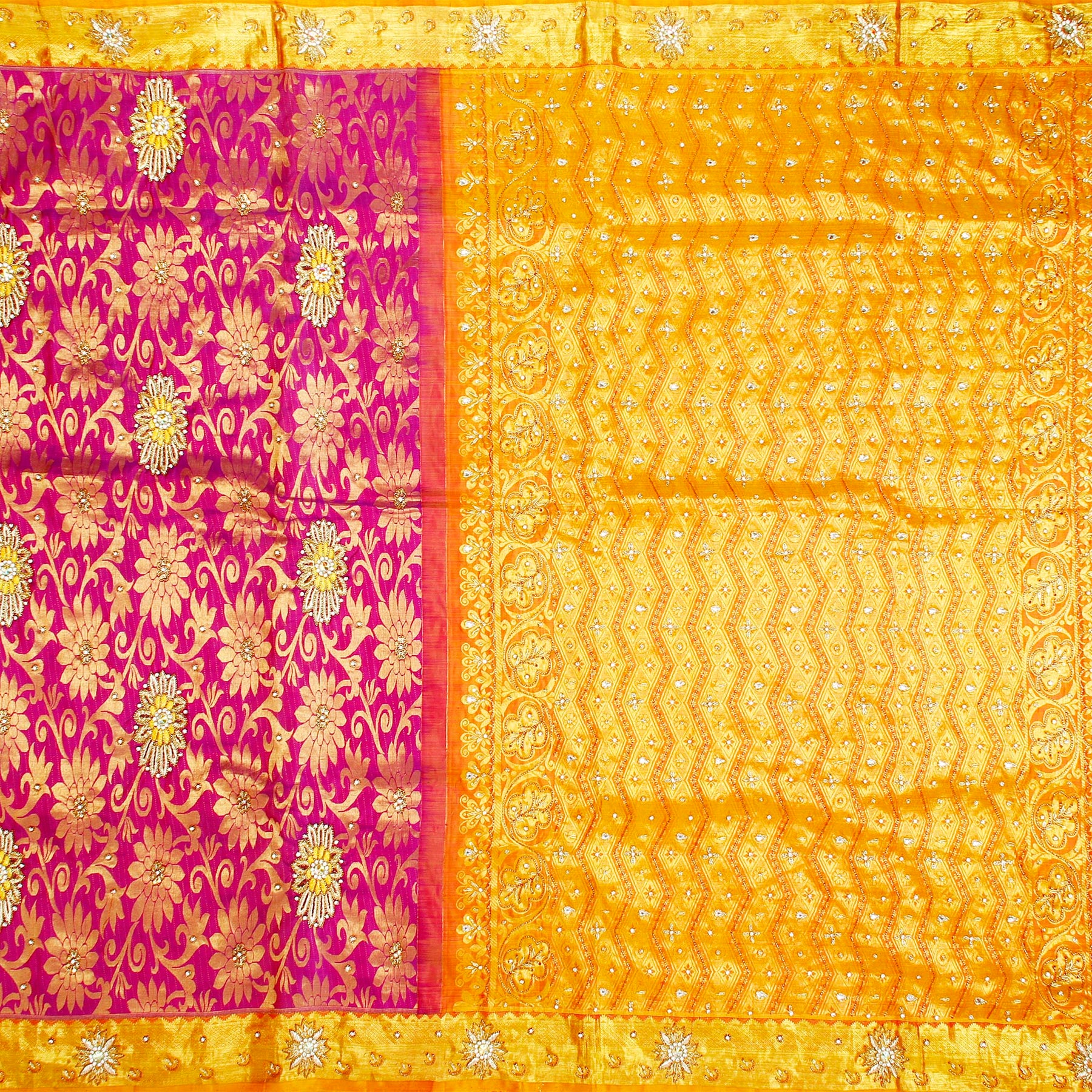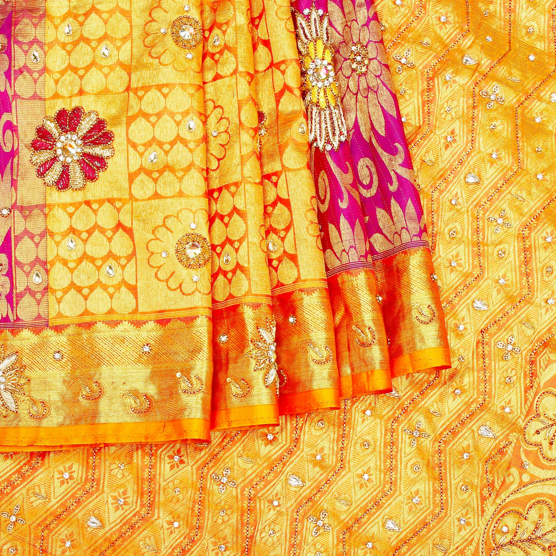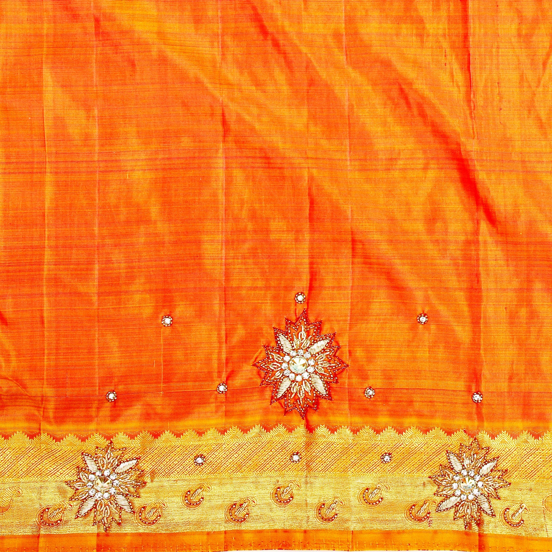 Hey grab the latest collections from the house of KUBERAN. This saree is a hand embroidered saree which is a must have for all the special occasions. The contrast in this saree is the bright colour combination with beautiful butties and gives a royal look to the wearer, don't miss this saree to add on to your wardrobe. This saree is a set with an unstitched blouse.