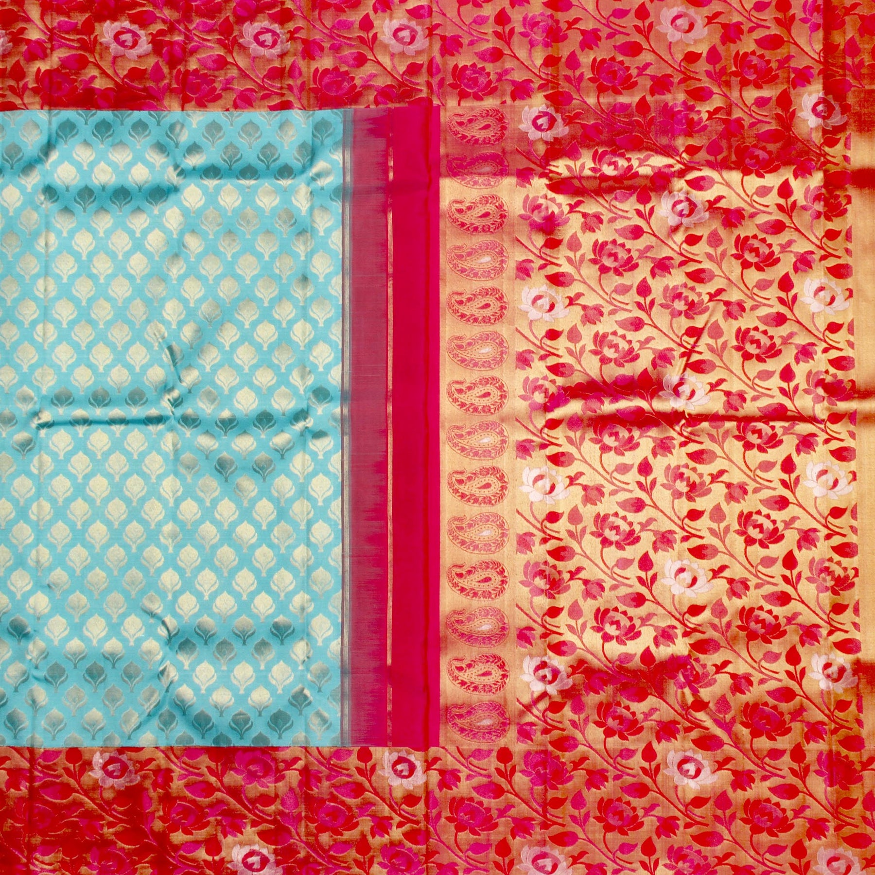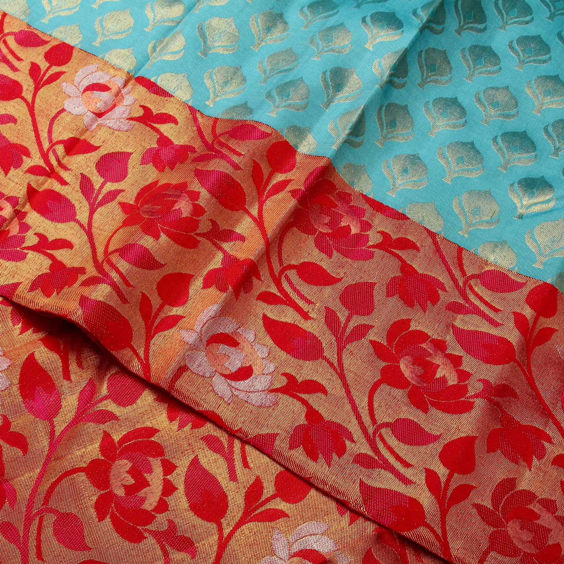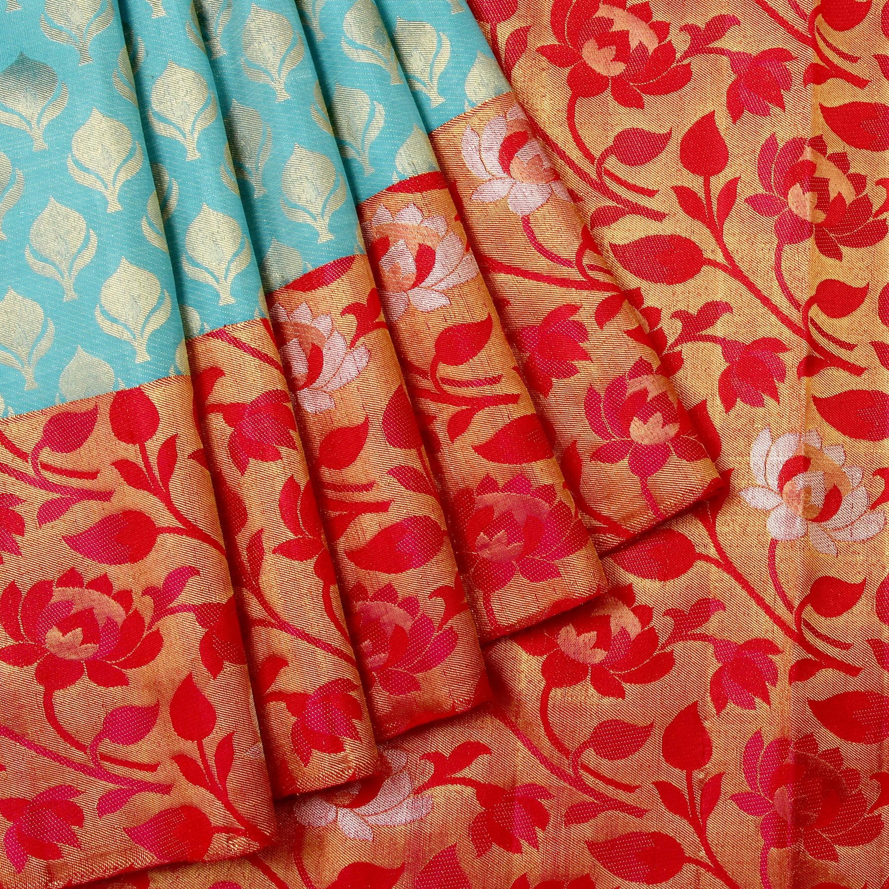 Kuberan Sky Blue Pink Kanchivaram Silk Saree