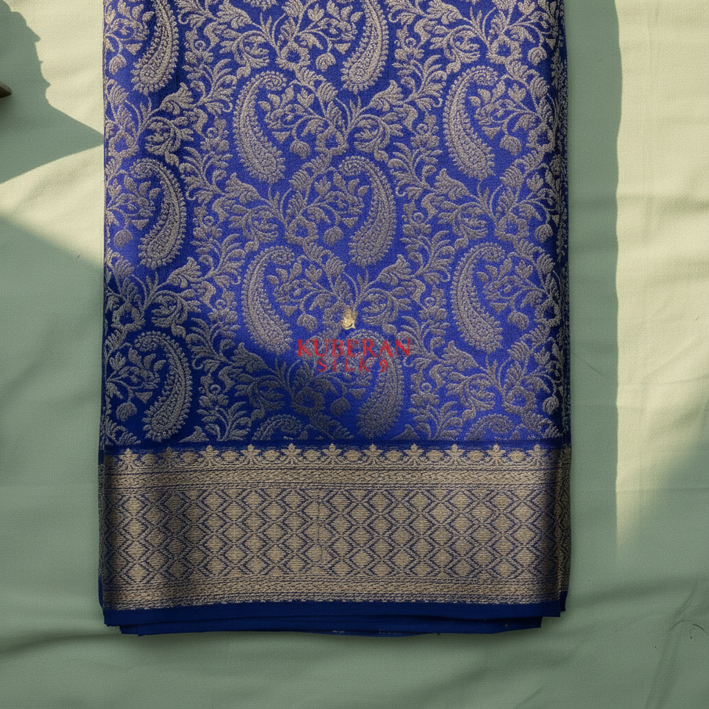 - Silver zari geometric border